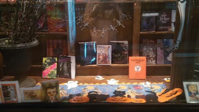 Logos Bookstore Halloween Windows, Boo and a Wayward Squirrel